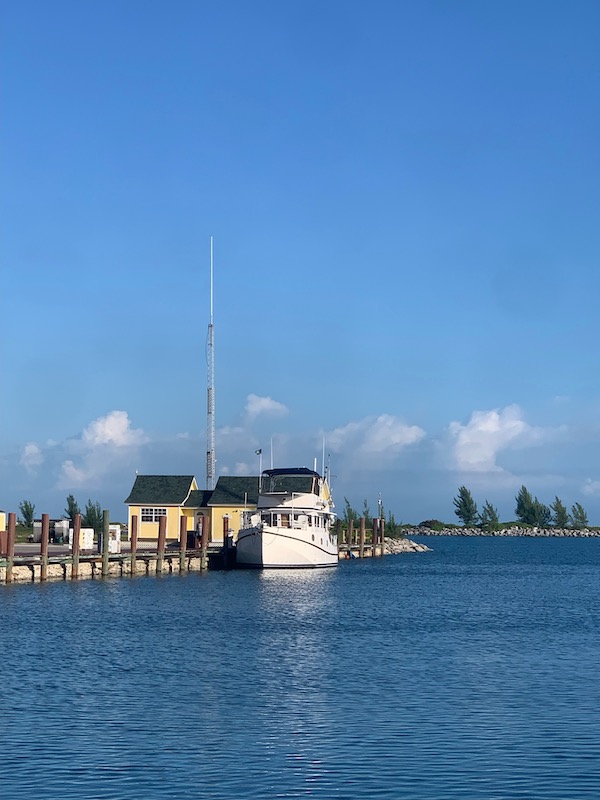 Mercifully, the weather forecast holds true and after a few hours the roll of the sea begins to dissipate. It’s sunny, hot, and we’re in the doldrums — just what you want the middle of the Stream to be (unless you’re under sail). We arrive at the Old Bahama Bay marina in West End at 2:50 p.m. The crossing took us 9 hours.